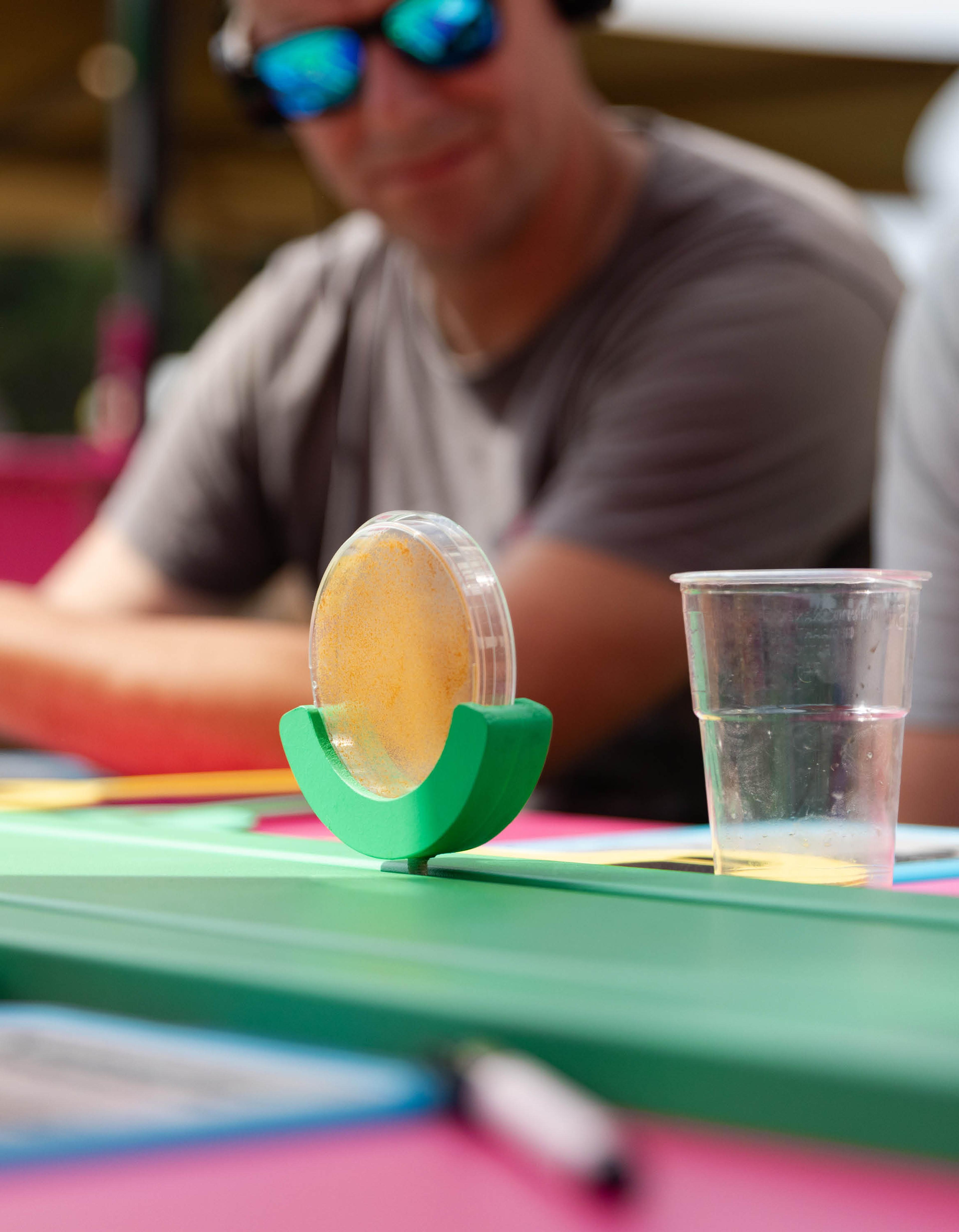 Embryos from the lab on tour through various Dutch festivals, inviting visitors to contribute to scientific research.