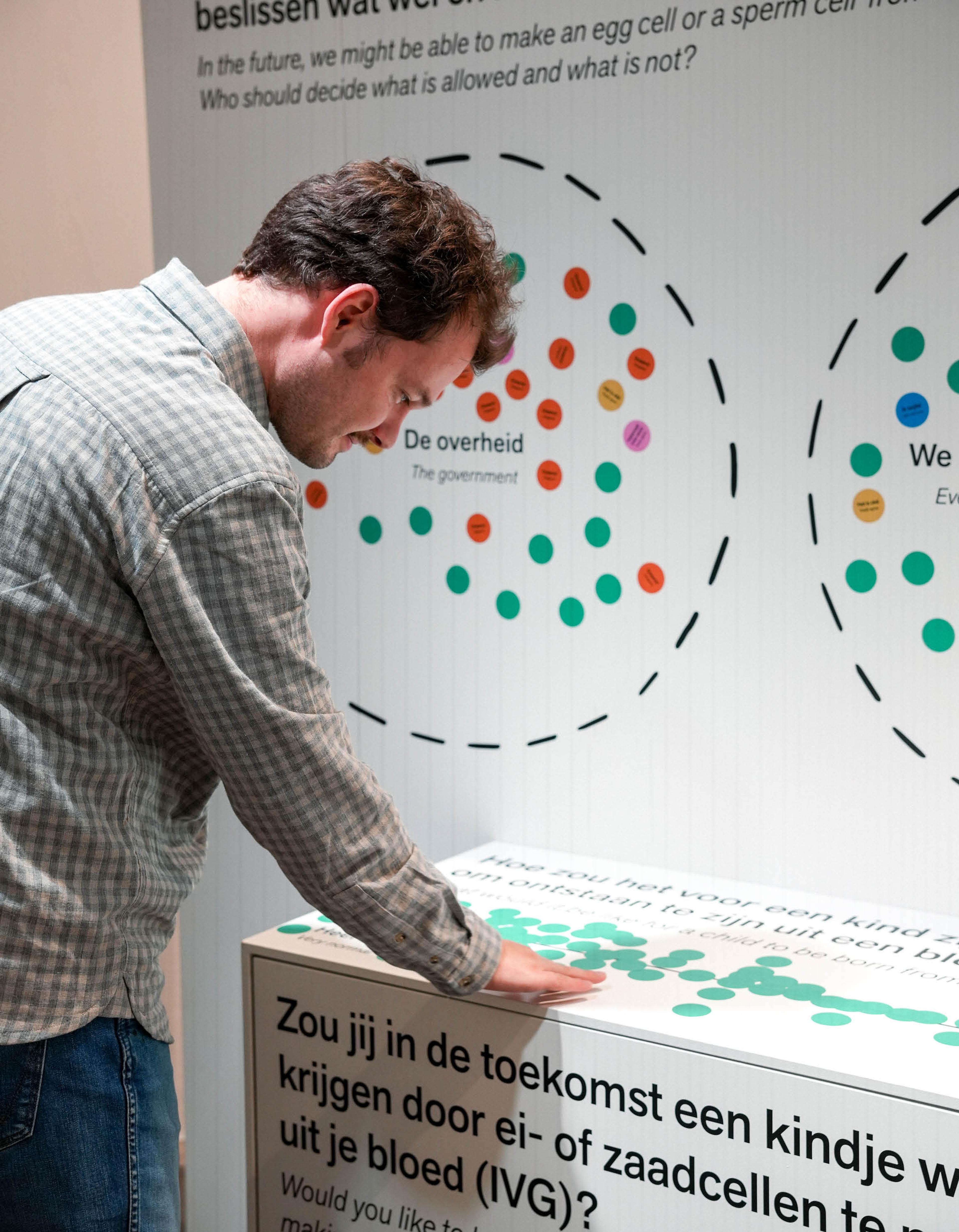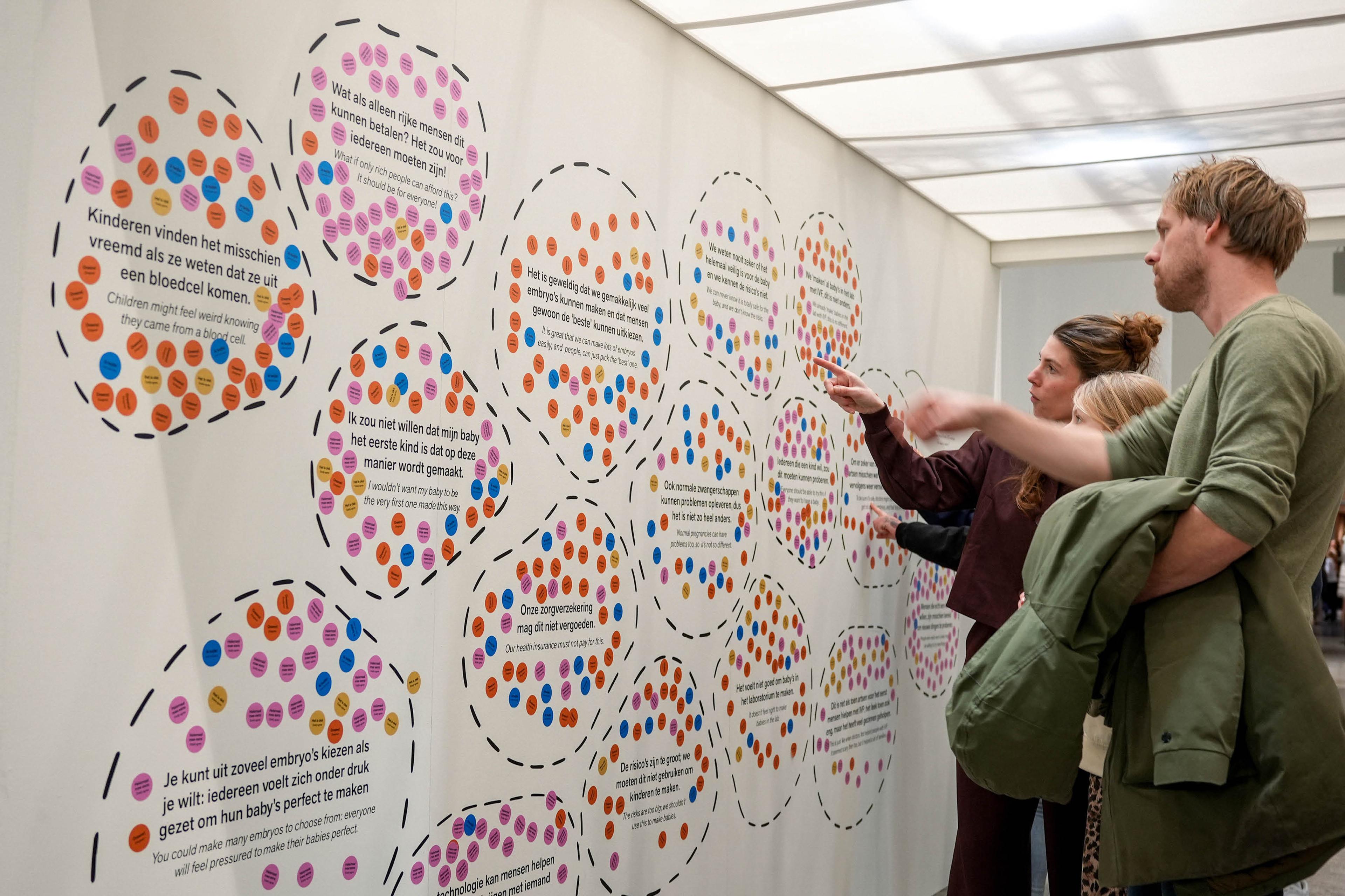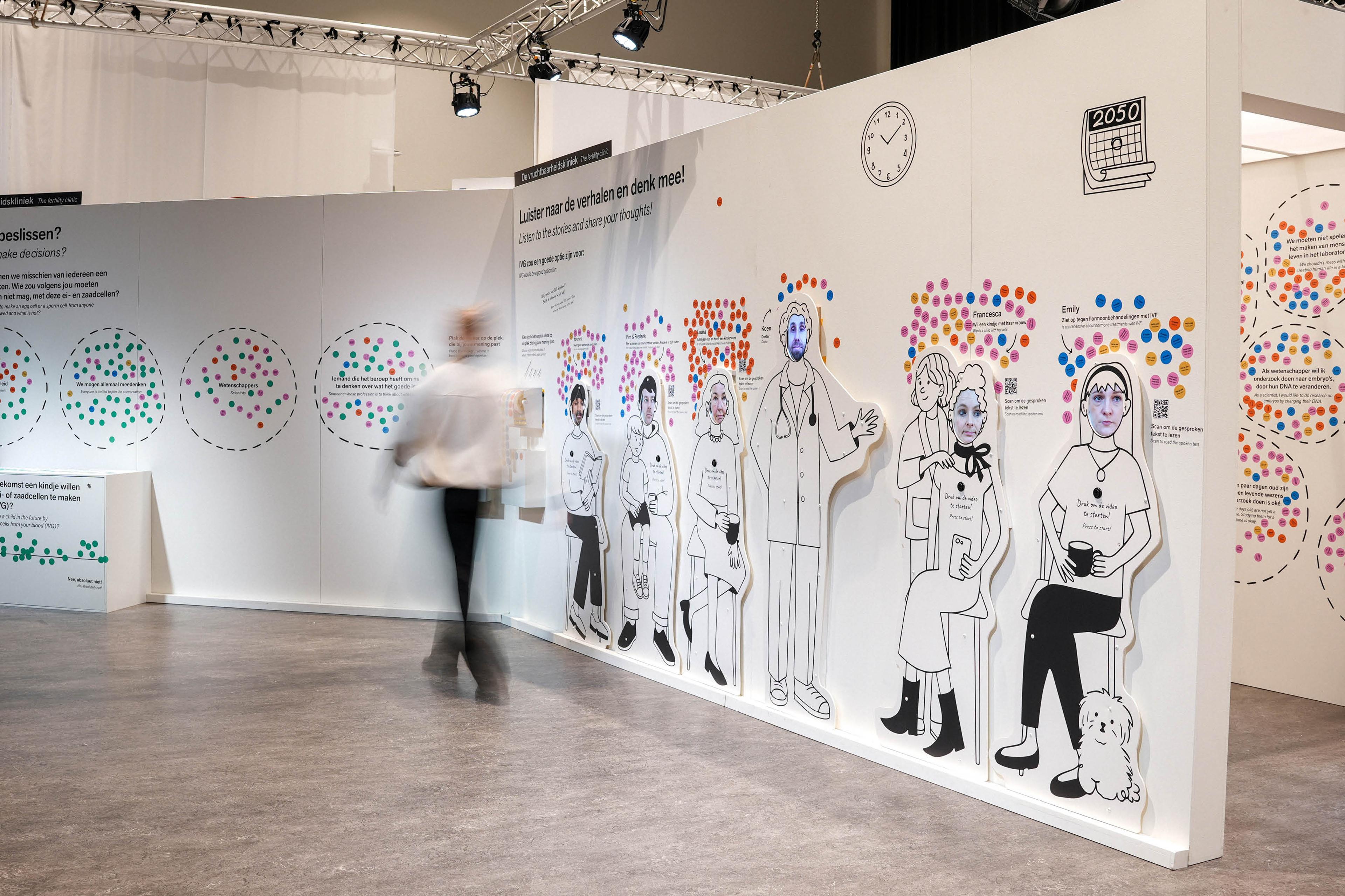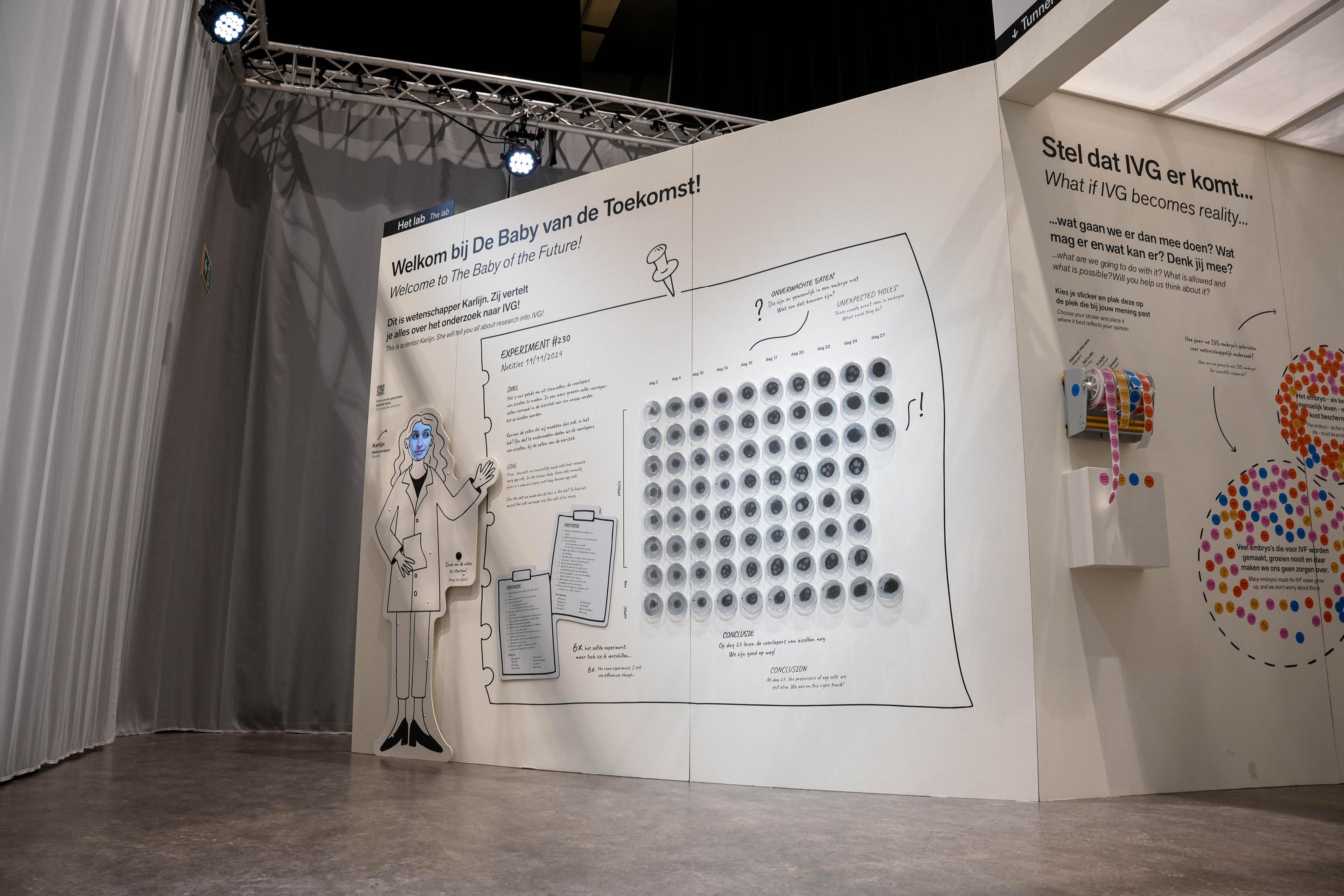 We were tasked with creating an exhibition space that explores a complex scientific concept: In Vitro Gametogenesis (IVG). Imagine that scientists could create egg and sperm cells from blood or urine—cells that could eventually grow into a baby. This breakthrough would mean anyone could have a child: young or old, sick or healthy. A profound question that demands thoughtful public engagement.