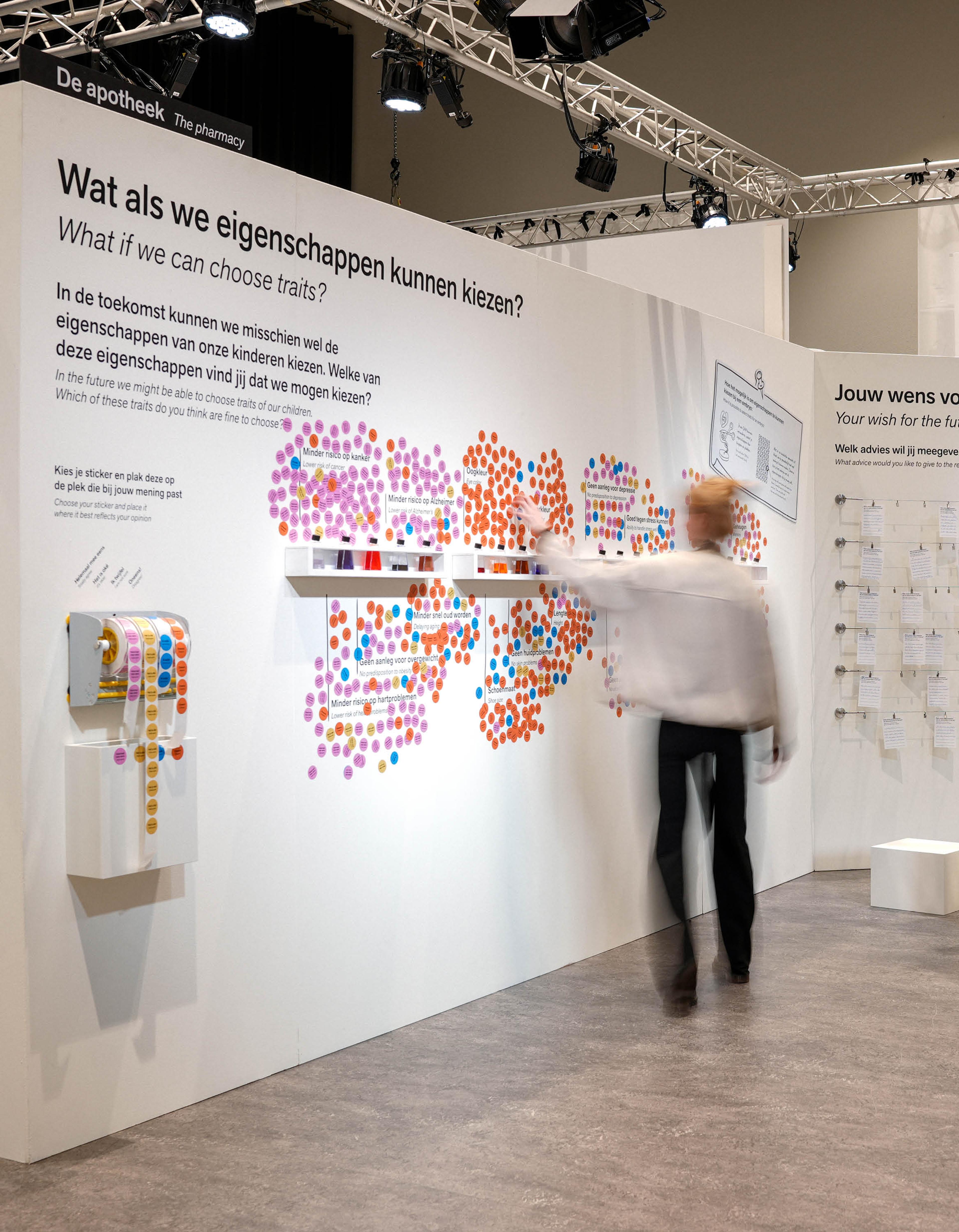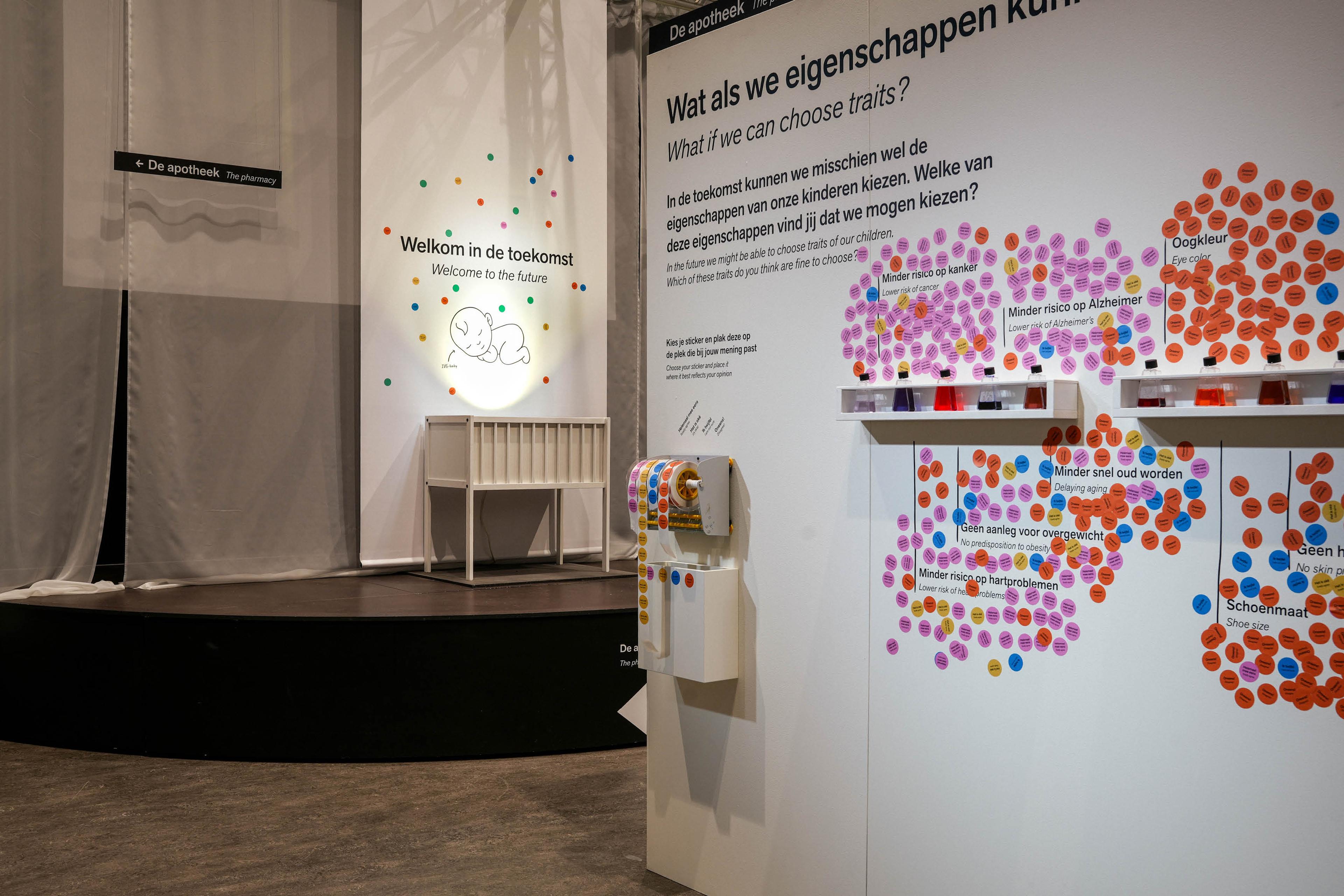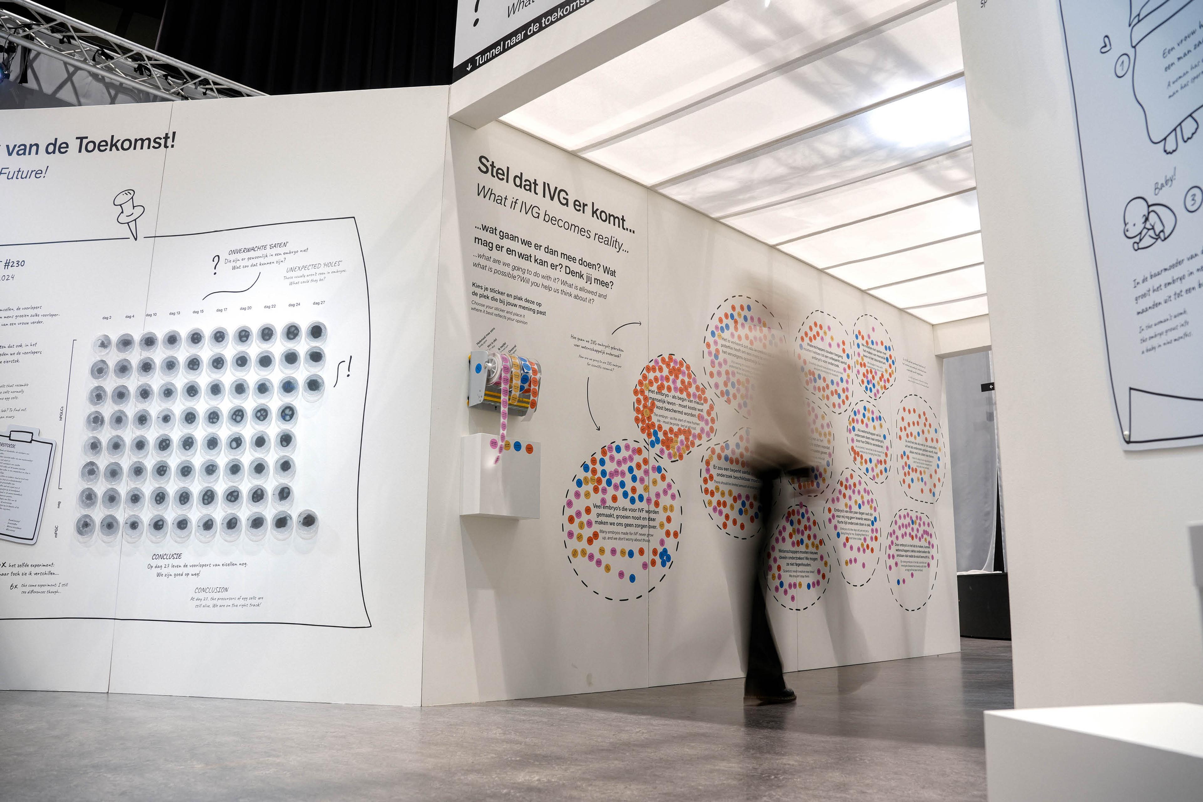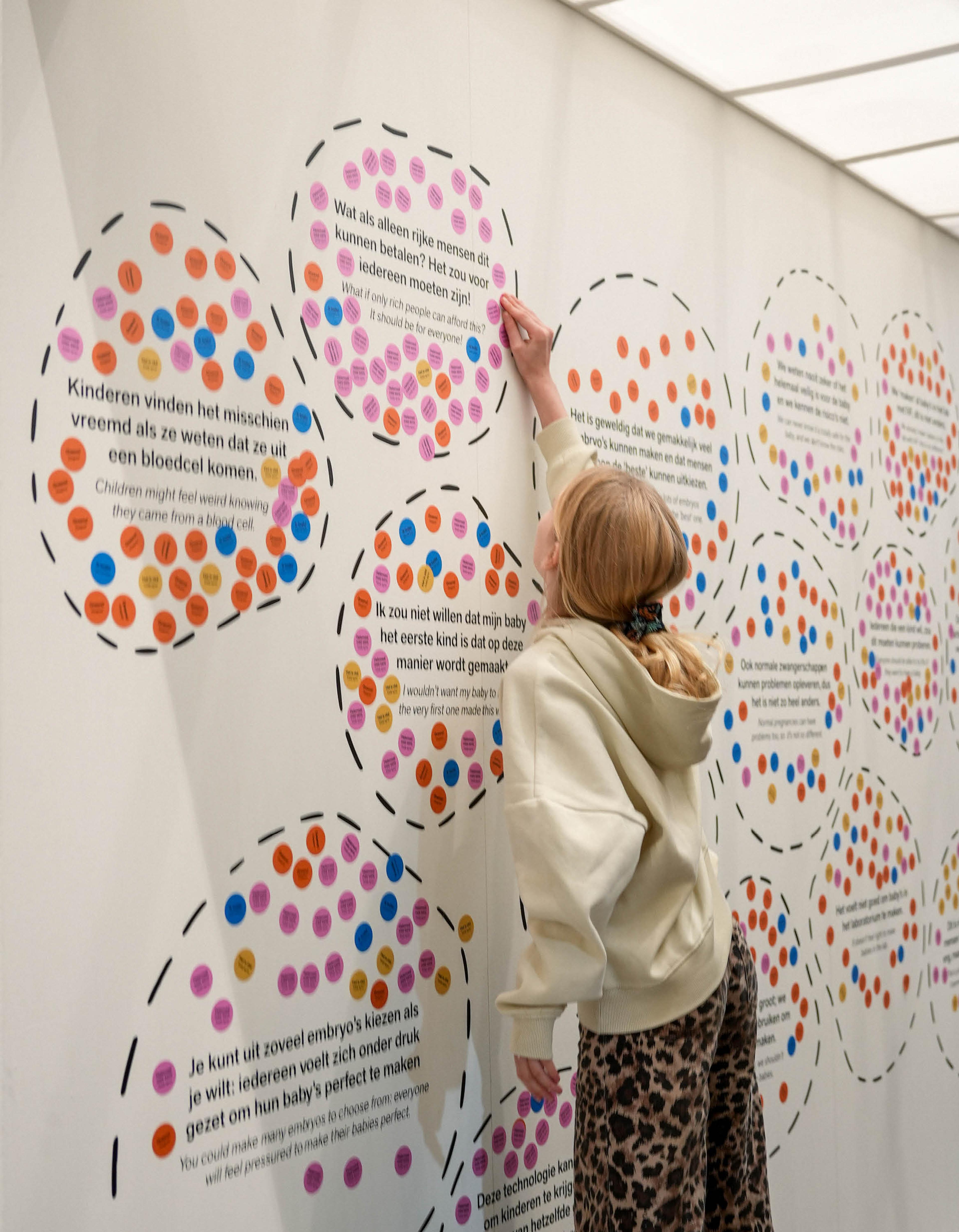 We were tasked with creating an exhibition space that explores a complex scientific concept: In Vitro Gametogenesis (IVG). Imagine that scientists could create egg and sperm cells from blood or urine—cells that could eventually grow into a baby. This breakthrough would mean anyone could have a child: young or old, sick or healthy. A profound question that demands thoughtful public engagement.
