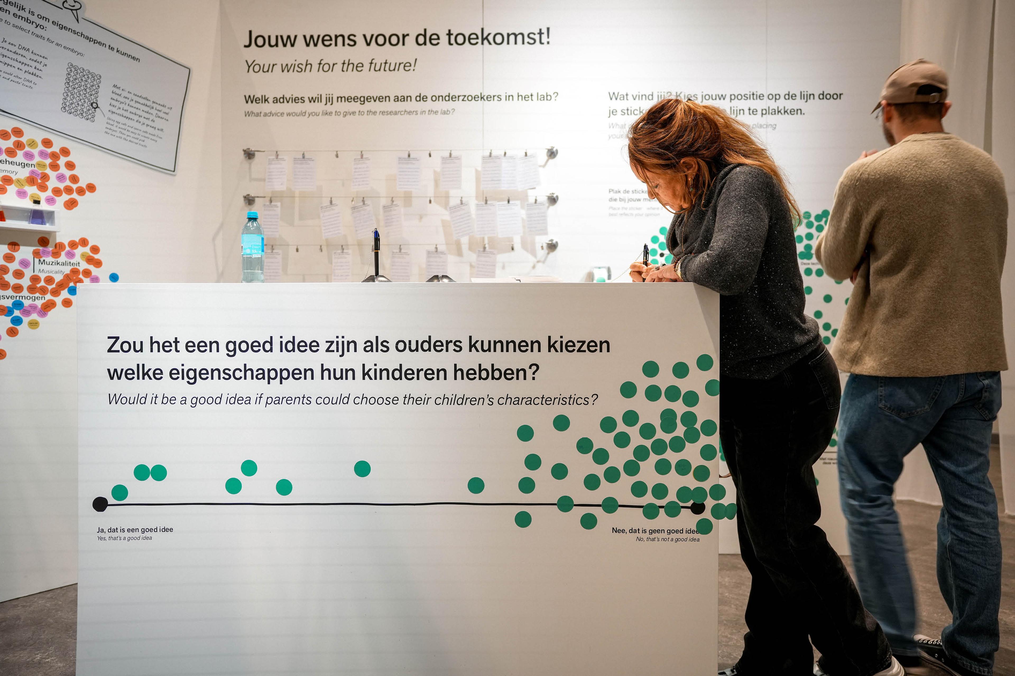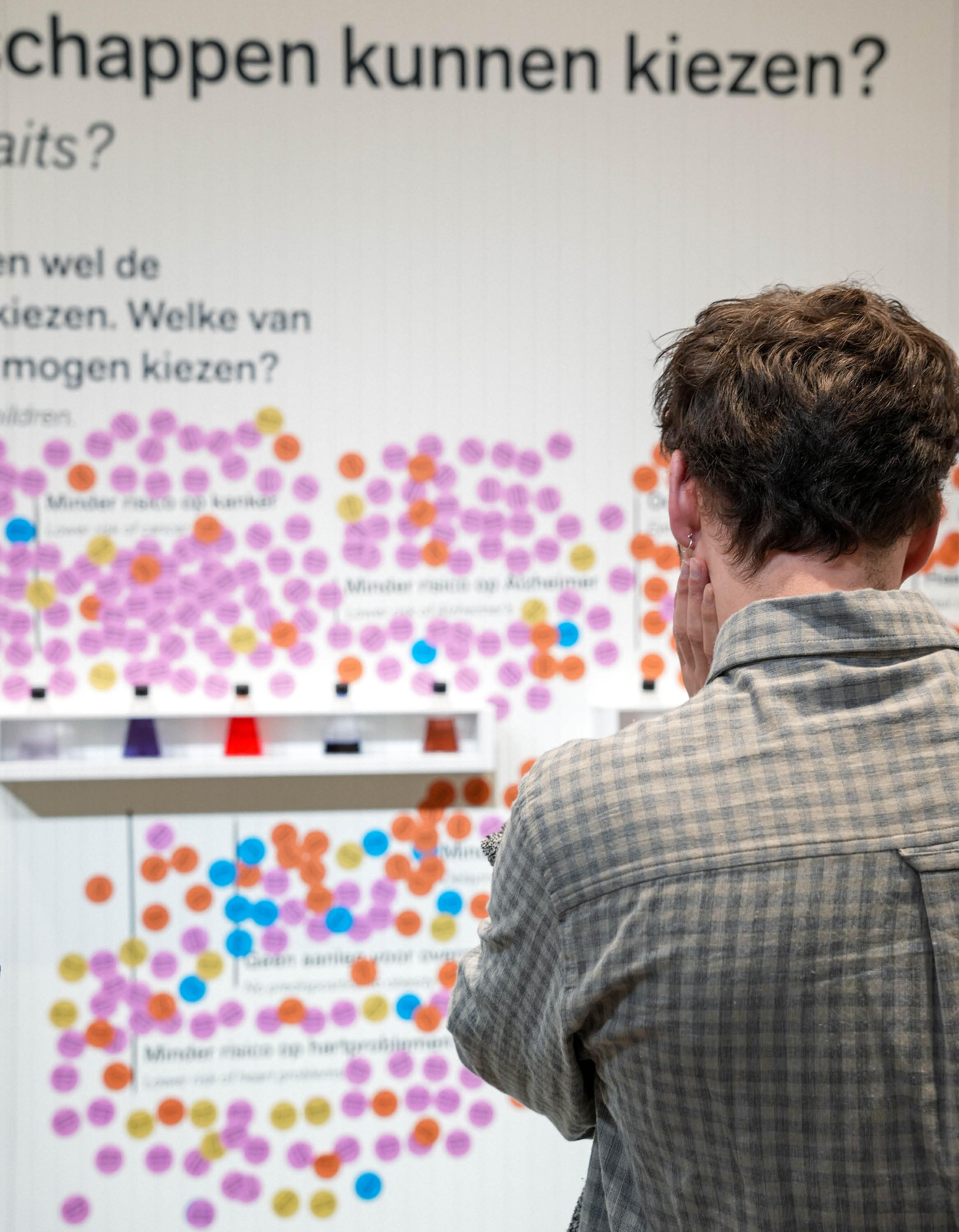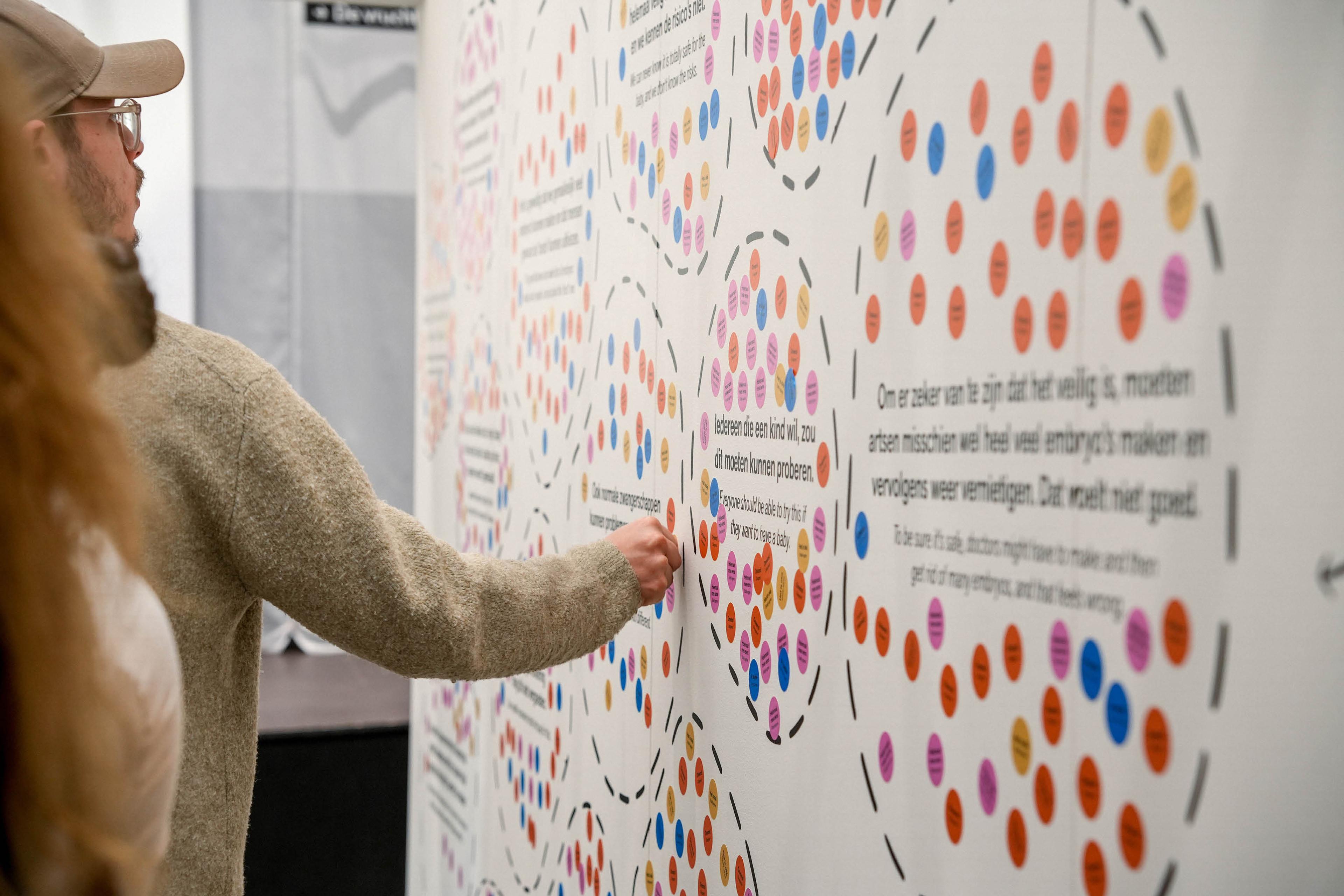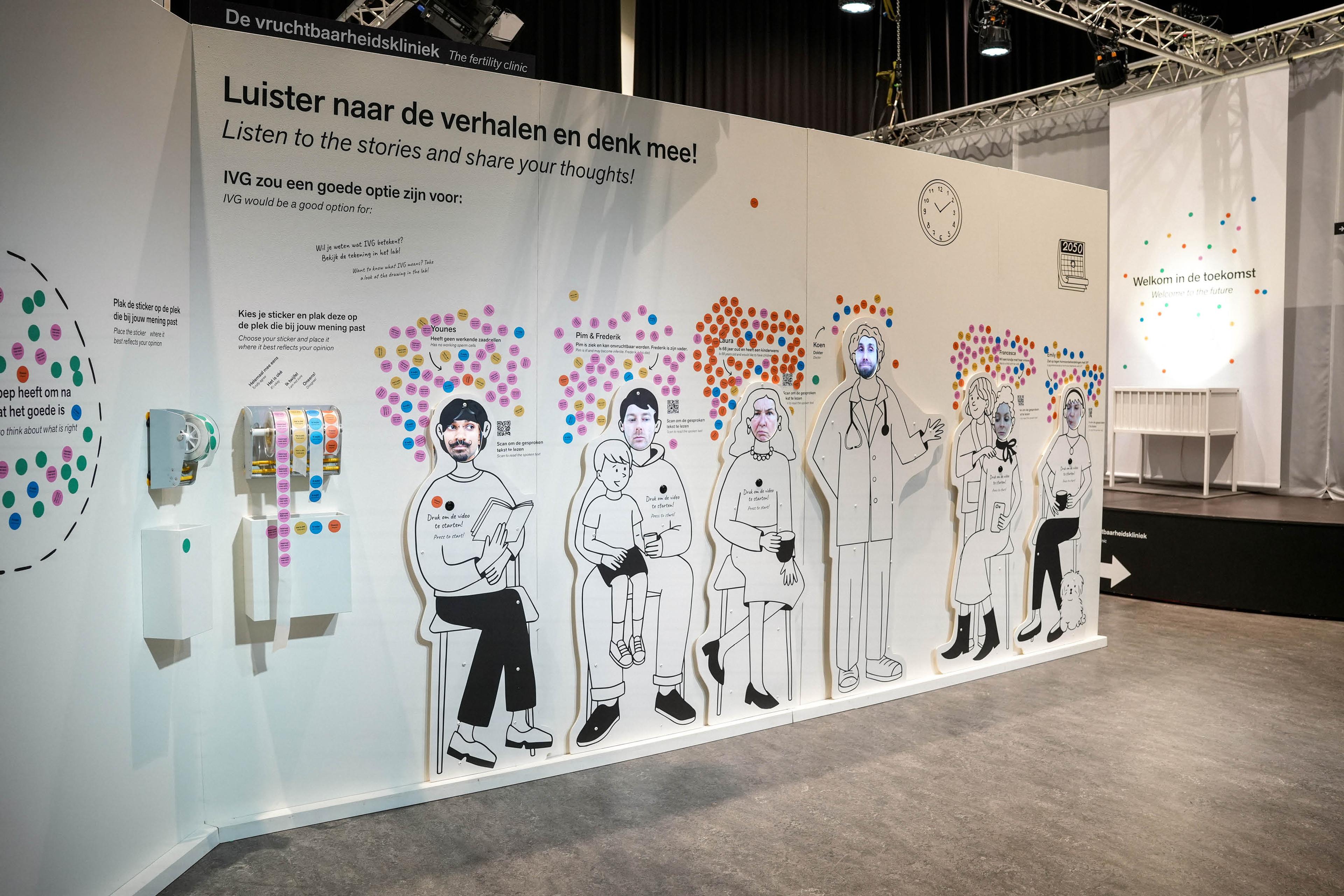 We were tasked with creating an exhibition space that explores a complex scientific concept: In Vitro Gametogenesis (IVG). Imagine that scientists could create egg and sperm cells from blood or urine—cells that could eventually grow into a baby. This breakthrough would mean anyone could have a child: young or old, sick or healthy. A profound question that demands thoughtful public engagement.